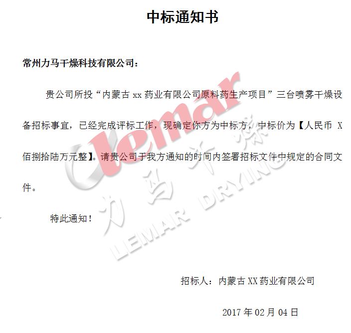 經(jīng)過(guò)廣泛的調(diào)研和嚴(yán)格的測(cè)驗(yàn),內(nèi)蒙古xx藥業(yè)有限公司,^終決定向常州力馬科技有限公司定購(gòu)三臺(tái)原料藥噴霧干燥機(jī),單筆金額高達(dá)百萬(wàn)余元,貢獻(xiàn)力馬新春第一單,為力馬贏得了農(nóng)歷雞年的頭彩。同時(shí)也展示了內(nèi)蒙古xx藥業(yè)有限公司蓬勃的生機(jī)和迅猛的發(fā)展勢(shì)頭,真誠(chéng)祝愿兩家公司合作愉快、雞年大吉。