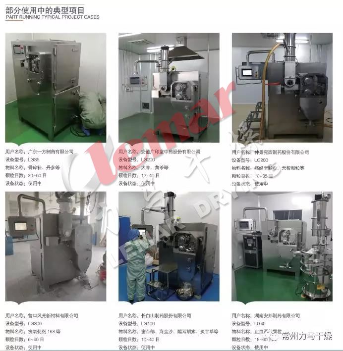 近年來,公司研發(fā)的噴霧干燥和干法制粒的組合成為制藥行業(yè)的新寵。僅僅在配方顆粒產(chǎn)業(yè)的客戶就有:四川新綠色藥業(yè)科技有限公司、浙江惠松制藥有限公司、湖南春光九匯現(xiàn)代中藥有限公司、北京春風(fēng)藥業(yè)有限公司、山西國新晉藥集團(tuán)有限公司、勁牌生物醫(yī)藥集團(tuán)有限公司、廣州香雪制藥股份有限公司等眾多著名企業(yè)。