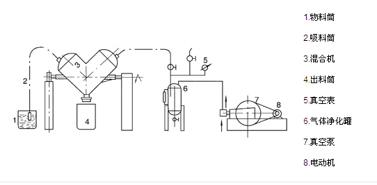 本機(jī)用于制藥、化工、食品等行業(yè)兩種以上的干粉狀、顆粒狀物料的混合。